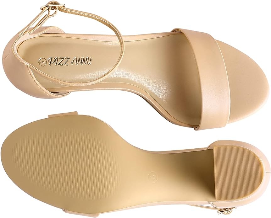 PIZZ ANNU Women's Open Toe Ankle Strap Low Block Chunky Heels Sandals Party Dress Pumps Shoes Strappy Buckle Sandals with 2.6" Tall Thick Heel Design