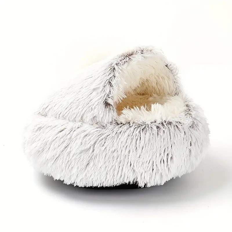 Soft and Cozy: Plush Round Hooded Pet Bed is made of highquality materials that provide warmth and comfort to your furry friends. Hooded Design: The hooded design of this pet bed provides a sense of security and privacy to your pets, making them feel safe and relaxed.