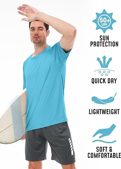 • UPF 50+ Protection--- Our men's swim shirts offer superior sun protection with a UPF 50+ rating, ensuring your skin is protected from harmful UV rays while enjoying outdoor activities like fishing, hiking, swimming, running, surfing, and more.