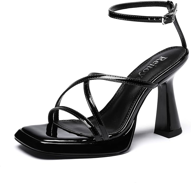 Reitoye Platform High Chunky Heels Square Toe Heeled Sandals Ankle Strap Block Heels