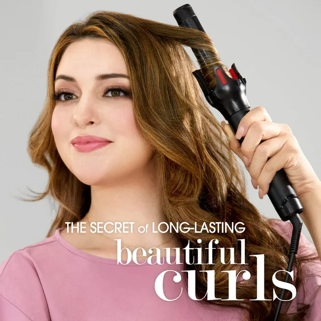 CURLS IN A FLASH: Build perfect, long-lasting curls at the push of a button; Instant 60-second heat-up time makes styling quick and easy; 5 easily adjustable temperature settings, from 250-450°F; Create a salon-style look for all hair types
