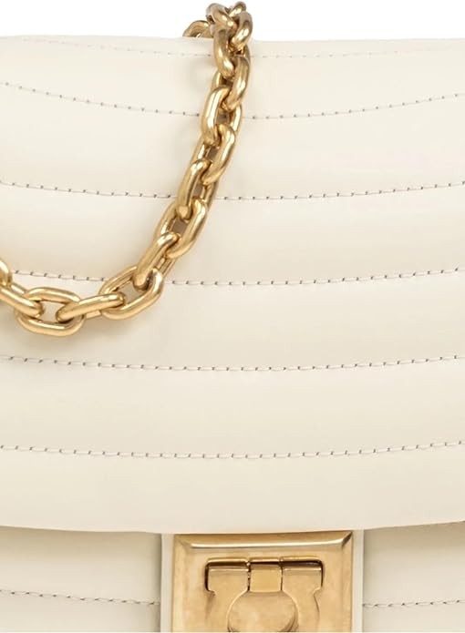Salvatore Ferragamo Quilted Medium Gancini Plaque Shoulder Bag In White