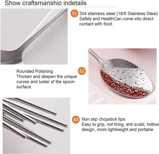 • 【Unique Design】 The portable utensils are smoothly finished with no sharp edges, perfectly weighted and balanced, safe and comfortable. The anti slip pattern makes these chopsticks are easy to pick up food, easy to use.