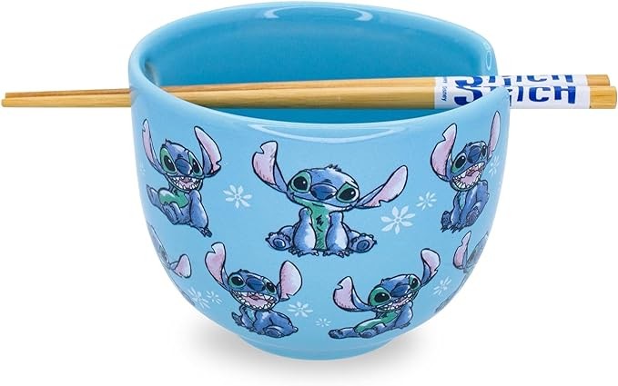 • INTERGALACTIC CUISINE: Sample all the finest flavors of the universe with this generously sized ramen bowl. This cool blue bowl features Stitch in a wide variety of cute and clever poses, hoping you'll share a bite of what you've cooked up.