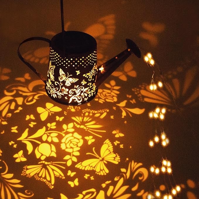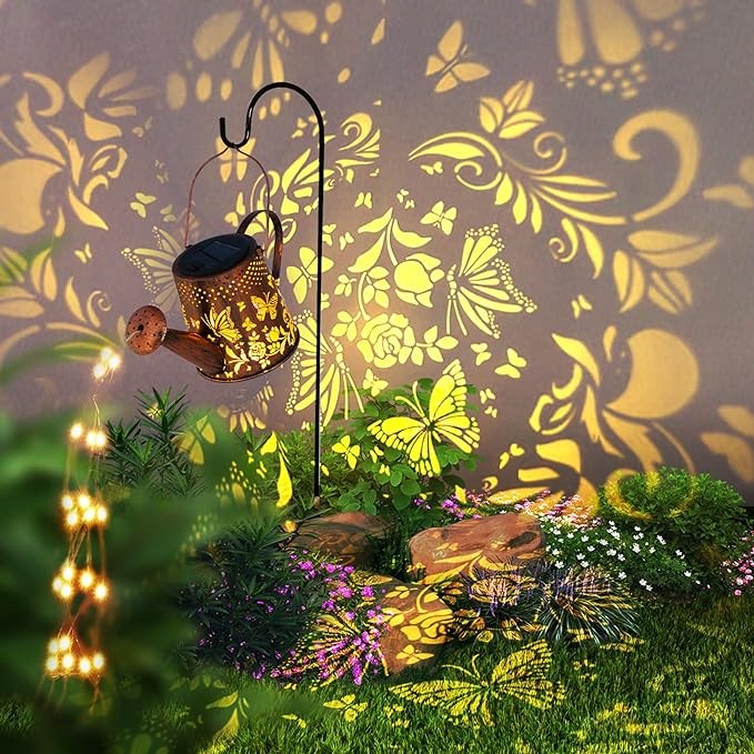 • ?【Ideal decorations &gifts】Solar outdoor decor lights are also an ideal gift for housewarming and gardening.Solar watering can lights project beautiful patterns at night,giving you a dreamlike feeling in gardens,patio,lawns,and courtyards.This solar lights is a garden gift for women,parents,grandma,friends,and gardeners.Whether it's birthday,Mother's Day,Father's Day,Christmas,or Thanksgiving,they will all love this unique design.