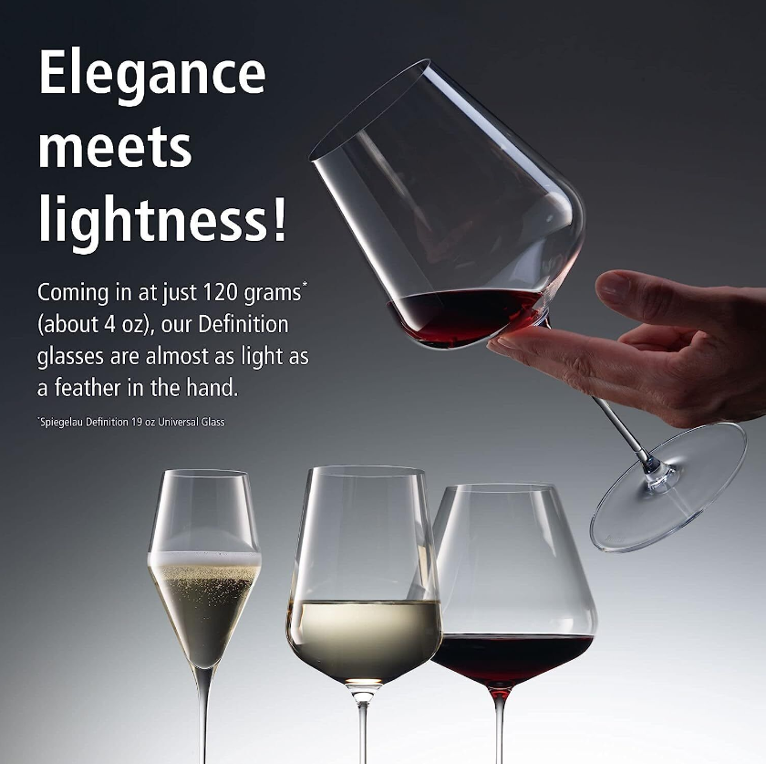 • FLAWLESS LEAD-FREE CRYSTAL – Spiegelau’s expertise results in balanced, unblemished, brilliantly clear glassware. Lead-free and seamless, this refined set of wine glasses highlights the natural hue and viscosity of each wine for a holistic tasting experience.