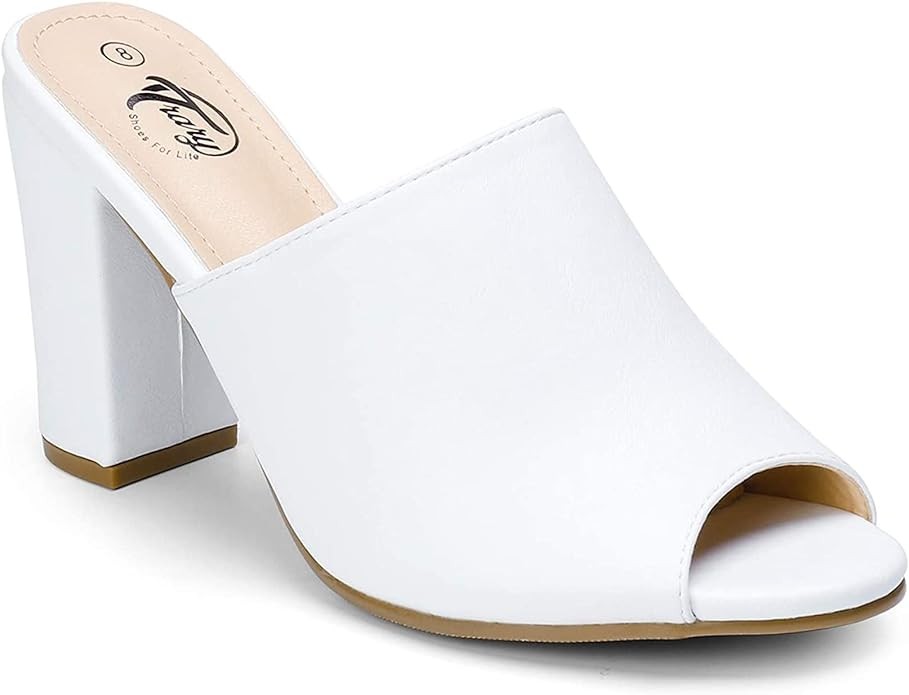 Trary Heels Sandals for Women, Women's Chunky Block High Heels Open Toe Heels Sandals Slip on Mules Comfortable Casual Dressy Black White Pink Brown Pumps