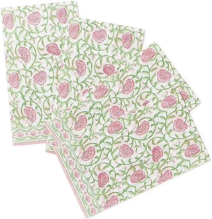 Two's Company Floral Block Print 3-Ply Paper Dinner Napkin Guest Towel, 8-inch Height, Kitchen Accessories, 54683
