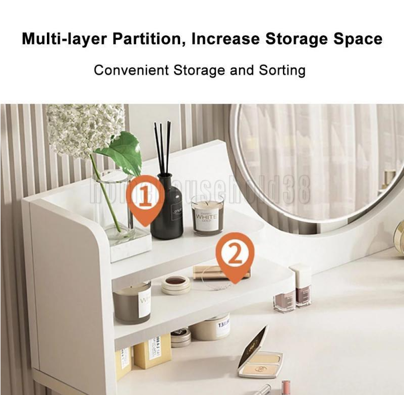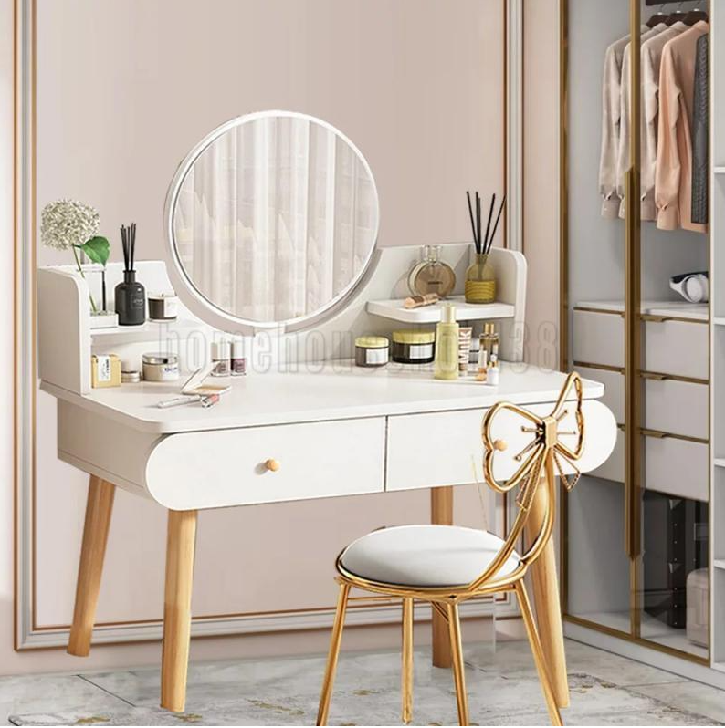 SURPRISE YOUR LOVE - With clean lines, an elegant white table surface, and large storage space, this makeup table is an ideal gift for mothers, girlfriends, daughters, or friends, who will certainly not hesitate to fill up their new dressing table.The dressing table can also be used as a writing or a laptop table.