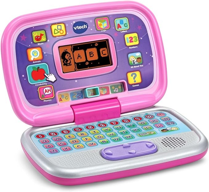 • Sleek, black toy laptop like Mom and Dad's has 30 learning activites with leveled learning. Personalize it with your child's name, age, avatar and more