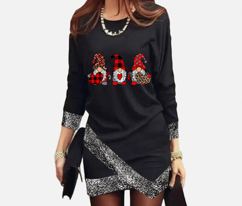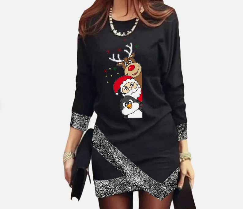Women's Fashion Leisure Christmas Round Neck Long Sleeve Irregular Hem Dress