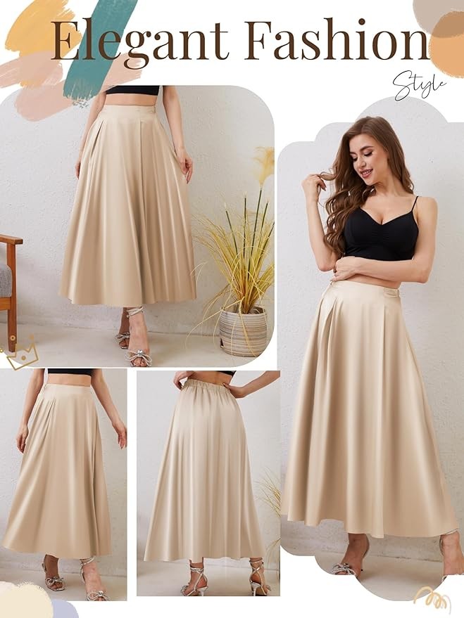 • 【Pairing】Womens satin skirt,maxi skirt is very suitable for matching with shirts, vests, suit jackets, sweaters, sweater cardigans, high heels, flat shoes, sneakers, sneakers, etc. This satin skirt one of the best choices for women's fashion items . midi skirt Suitable for spring, summer, autumn and winter.