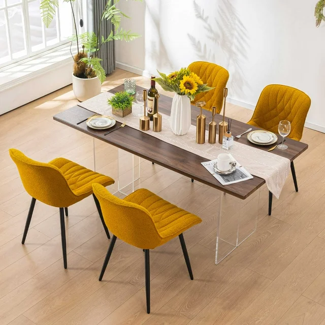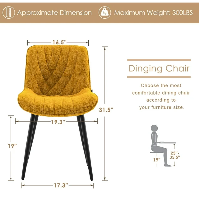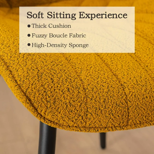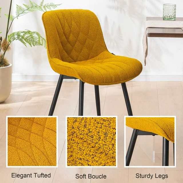 YOUNIKE Upholstered Dining Chairs Set of 2 Boucle Modern Dining Room Chair for Kitchen, Yellow