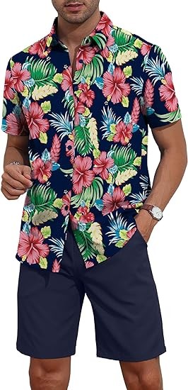 • HAWAIIAN BEACH FLOWER STYLE: This classic casual summer flower hawaiian short set provide kinds off tropical floral print shirt and solid color shorts, the combination of rich colors and fashionable printed will not let you down, colorful vibrant prints always attract people's eye.